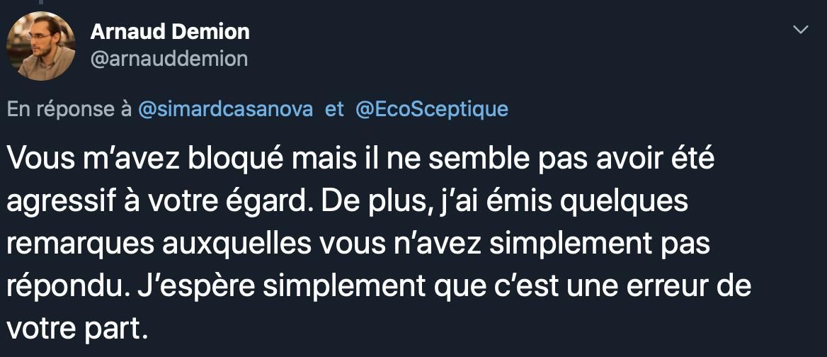 Il est venu m'emmerder sur mon compte principal, où je l'ai aussi bloqué Nous avons une connaissance commune par qui j'ai fait passer un certain nombre de messages sur les raisons de son blocage, j'espérais que ç'a avait été compris