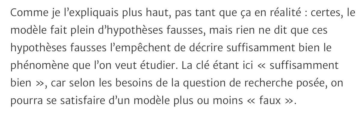 @Heu7reka @epenser Sur la question de la « fausseté » des hypothèses d’un modèle, j’avais d’ailleurs publié cet article il y a quelques semaines : ecosceptique.simardcasanova.net/mur/les-hypotheses-de-mon-modele-sont-fausses-est-ce-bien-grave/ S’il n’y a qu’une seule idée à retenir, c’est sans doute celle-là :