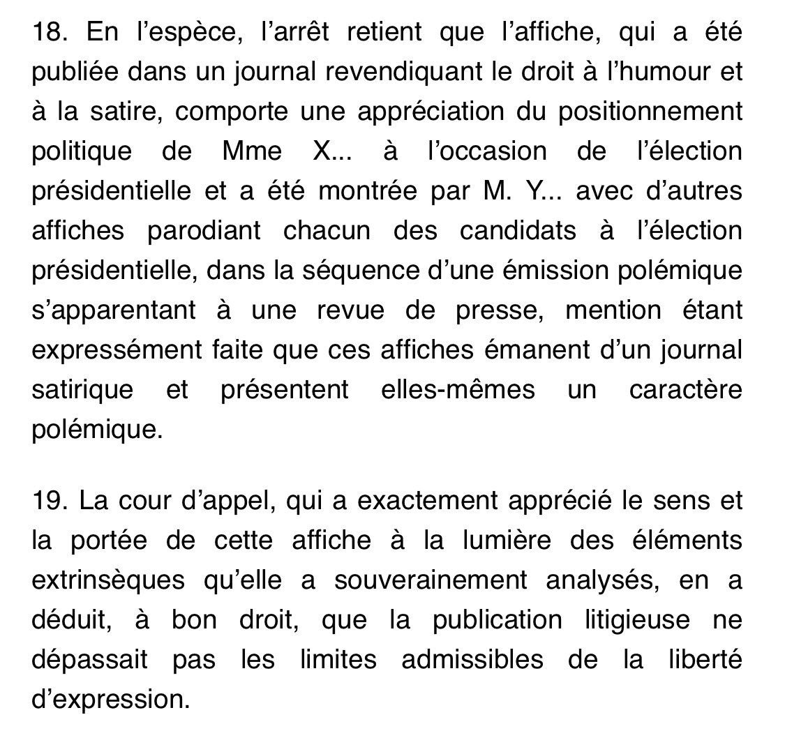 Pas vraiment en fait Ruquier a montré une série d’affiches satiriques de Charlie en précisant qu’elles sont polémiques L’une d’elle compare MLP à un étron La Cour juge qu’il y a injure, mais elle ne casse pas la relaxe car montrer l’affiche n’était pas une attaque directe @ludwiggallet/1187708666503421955