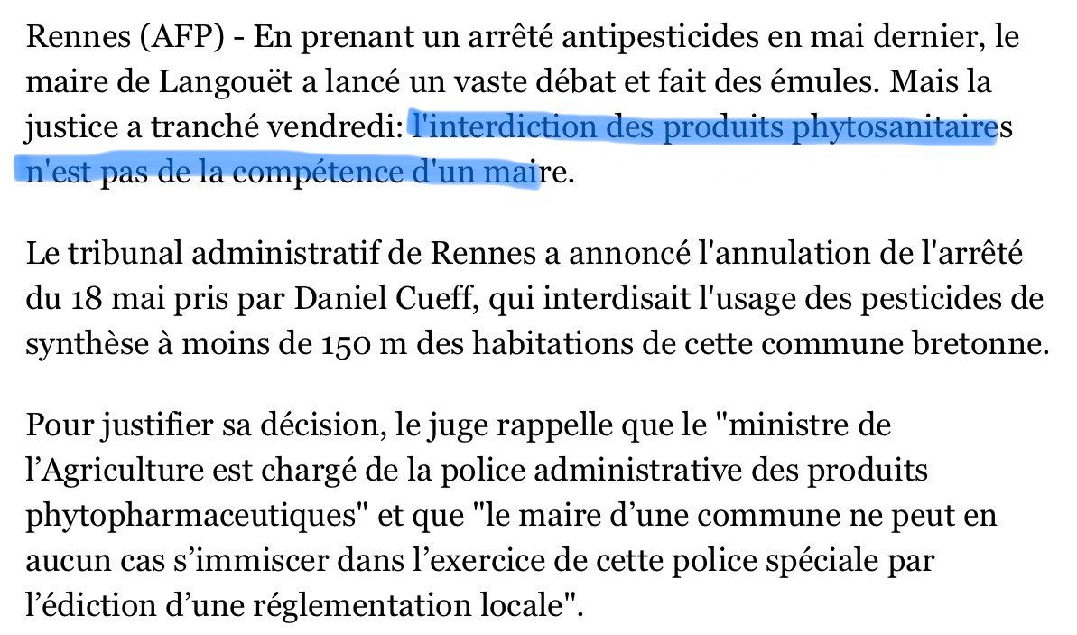 On rappellera aux zozos d’Envoyé Spécial que les maires n’ont pas le droit de prendre d’arrêtés anti-pesticides contre les agriculteurs L’ont-ils dit à cette dame clairement en souffrance ? Pourquoi ne pas le mentionner dans l’extrait ? Quelle mascarade nouvelobs.com/sante/20191025.AFP7392/annule-par-la-justice-l-arrete-anti-pesticides-de-langouet-a-ouvert-les-debats.html @EnvoyeSpecial/1187451673582673925
