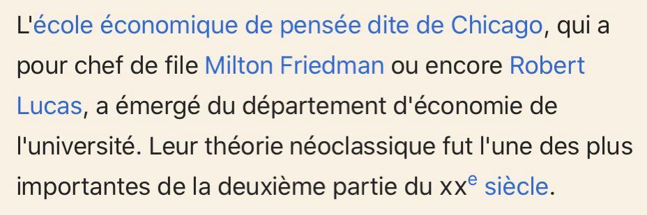 1. Exemple de merdasse : la théorie néoclassique date… de la fin du XIXème Comment des théories quasiment un siècle plus récentes pourraient être confondues avec ? Sauf si, bien sûr, les gens qui ont écrit ça sont baignés de trucs faux sur l’économie… fr.wikipedia.org/wiki/Universit%C3%A9_de_Chicago?wprov=sfti1