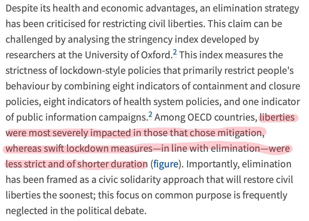 Cet article récemment publié dans The Lancet et co-écrit par des économistes montre *au contre* que le zéro COVID a *moins* entamé les libertés publiques que les stratégies d’aplanissement de la courbe 🤷🏻♂️ thelancet.com/journals/lancet/article/PIIS0140-6736(21)00978-8/fulltext @24hPujadas/1395428306711896065