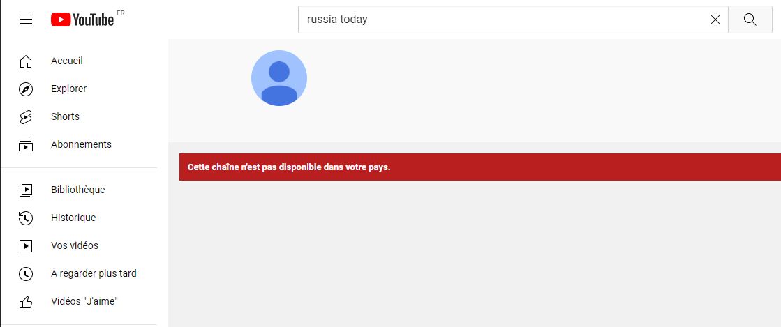 : Le blocage de #RussiaToday est effectif sur youtube