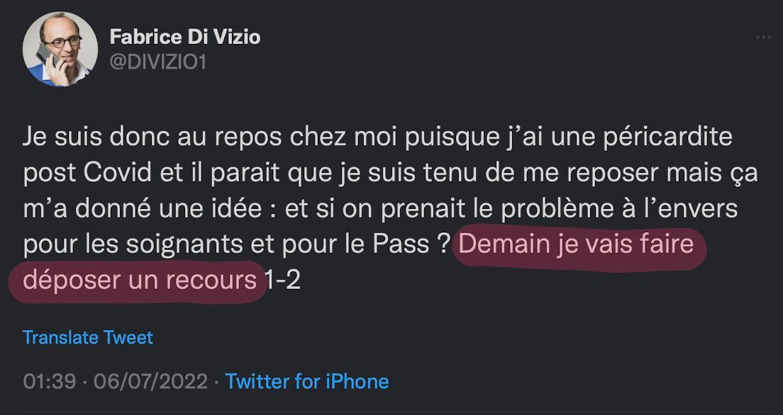 Si son recours va aussi loin que ses plaintes qui ont toutes été classées sans suite, il sera remis de son COVID avant la fin de la procédure…