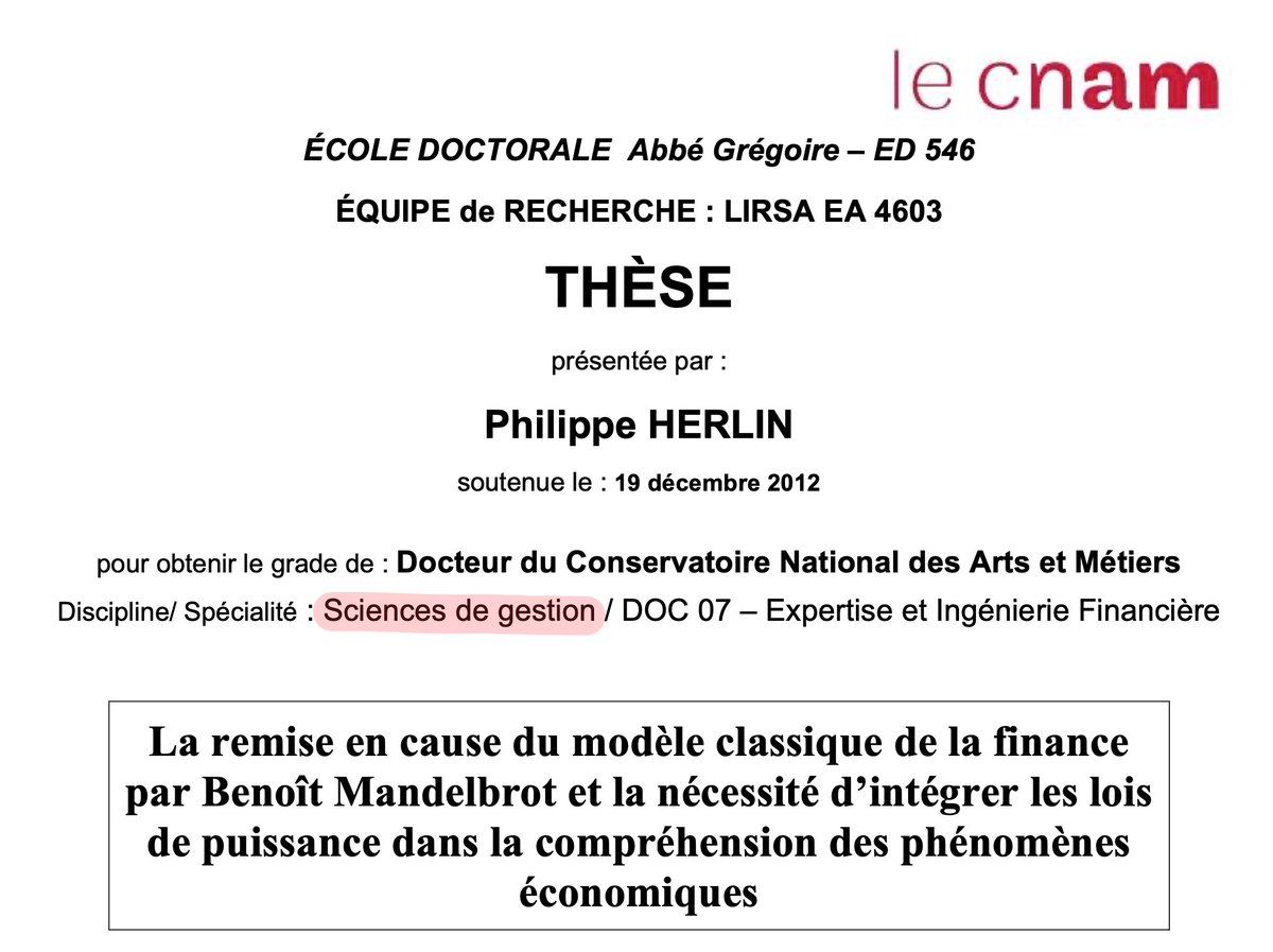 1. Ce qu’il prétend être (“Économiste”) vs La véritable discipline de sa thèse (“Sciences de gestion”) (Science éco ≠ sciences de gestion, ce sont deux disciplines complètement différentes)