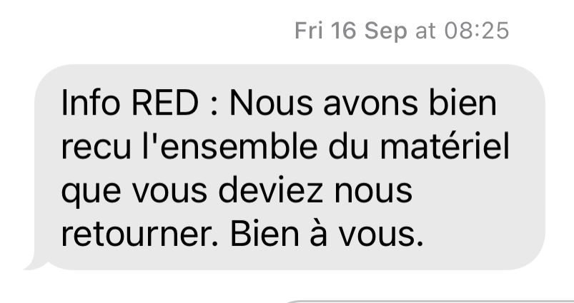 Donc ils confirment que j’ai bien envoyé mon équipement mais j’ai quand même une facture de 99€ pour « non restitution du modem Fibre »