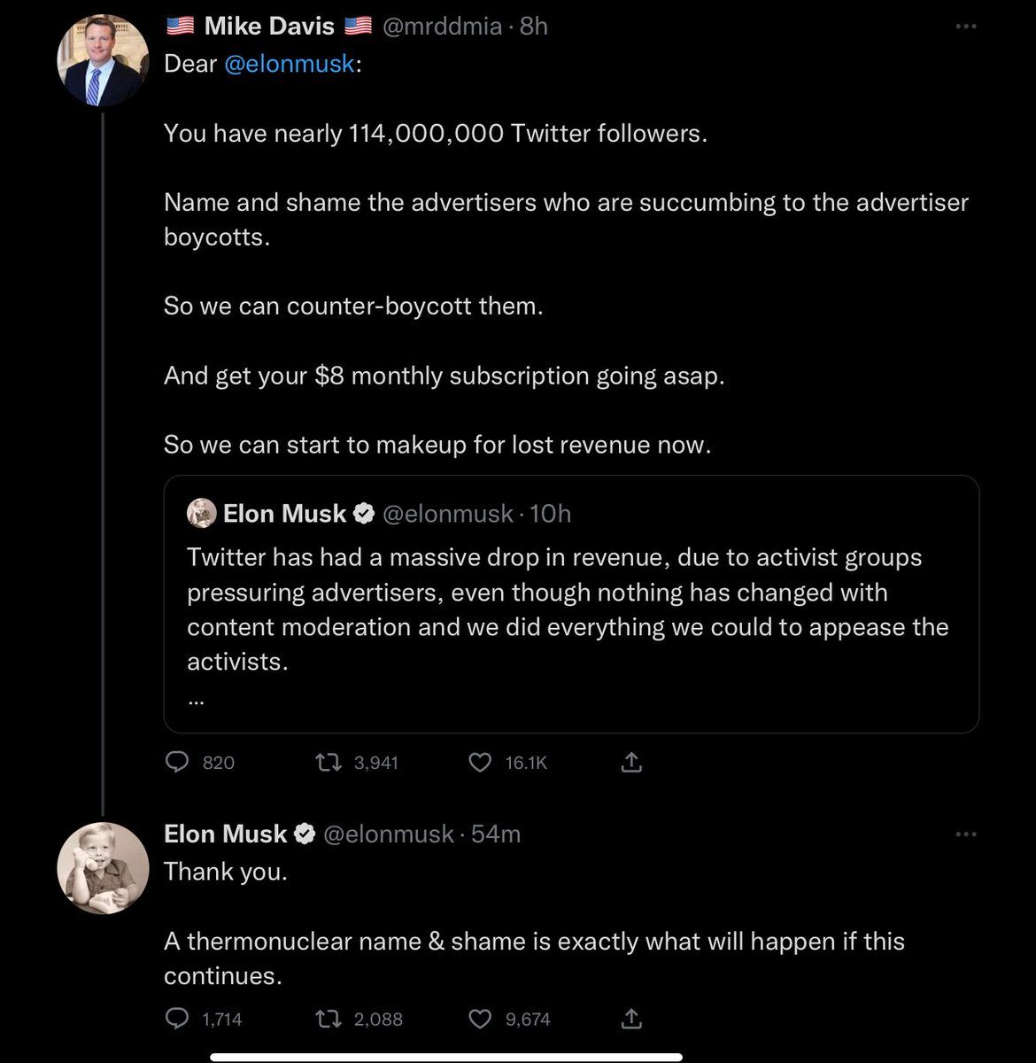 « Convainquons les annonceurs de revenir sur Twitter en les menaçant de nuire à leur image s’ils ne reviennent pas » What could go wrong 🙃