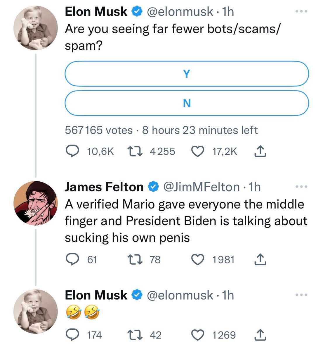 1. Je suis sûr que le grand sérieux avec lequel Musk traite ces dérives du nouveau système de vérification va convaincre les annonceurs de revenir 🙃 Ça va sans doute être extrêmement utile pour rassurer les influenceurs à large audience sur la direction de la plateforme
