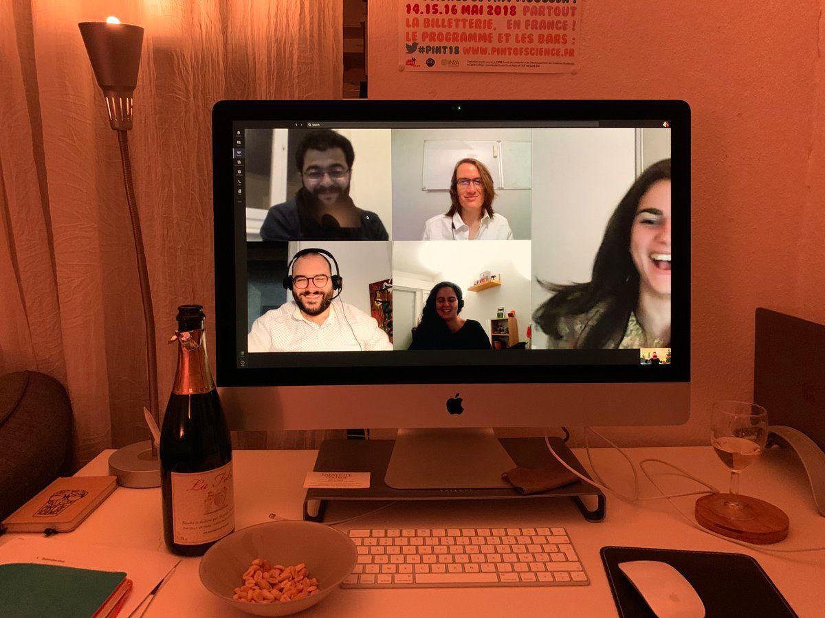 1. The bottle of wine is open, and we’re celebrating @MartinDyl’s PhD! Lockdown style 🍾 @Julien_Grdjean @AITYCAMILLE