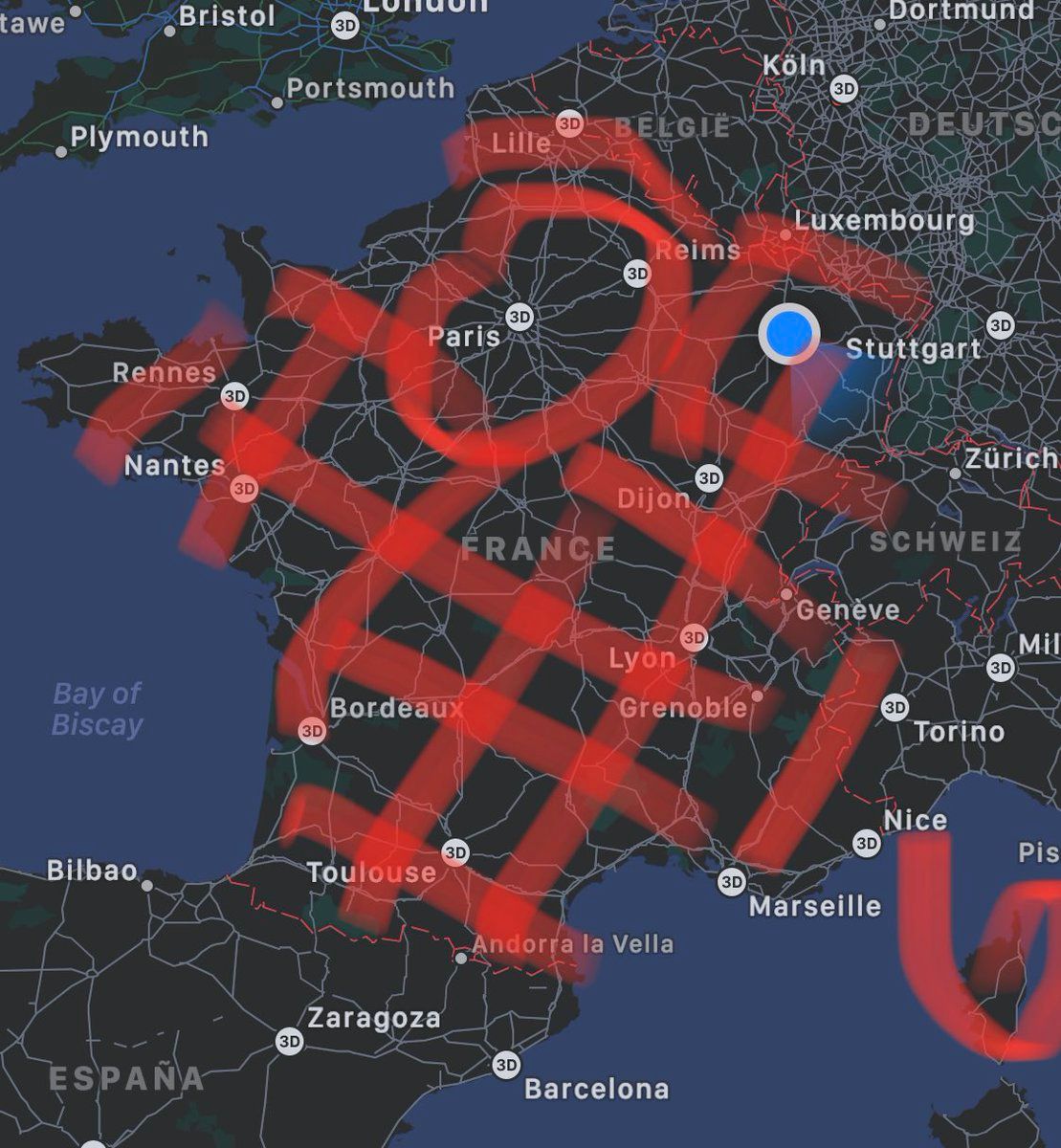 Bear with me on this one because I know it can be shocking. But… Yes, Paris is in France, but so is the rest of France too 🙃 Colored in red in this map France is so much more than just Paris – luckily so imho 🙊 (And you can see where Nancy is!)