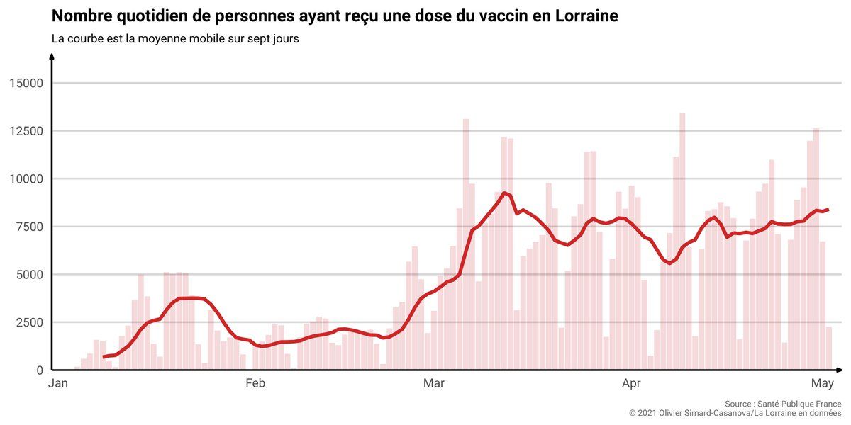 1. 25% of the population of my home region Lorraine have received at least one dose of the vaccine 💉 Daily vaccinations should increase +++ in the upcoming days, due to Pfizer delivering a ton of doses The incidence rate has decreased a lot (map is way lighter) (My own plots)