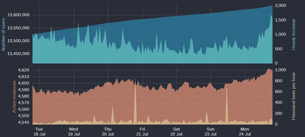 Every single time he’s doing something completely stupid the number of new created accounts jump on Mastodon lol
